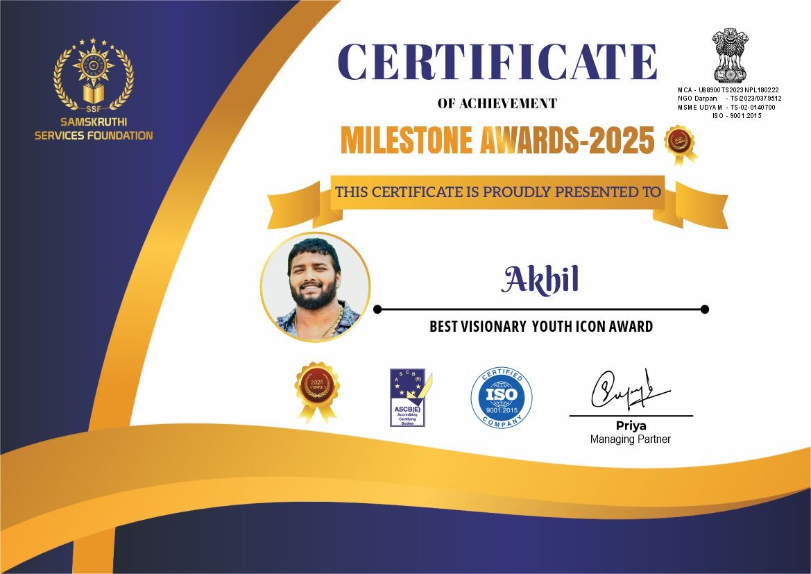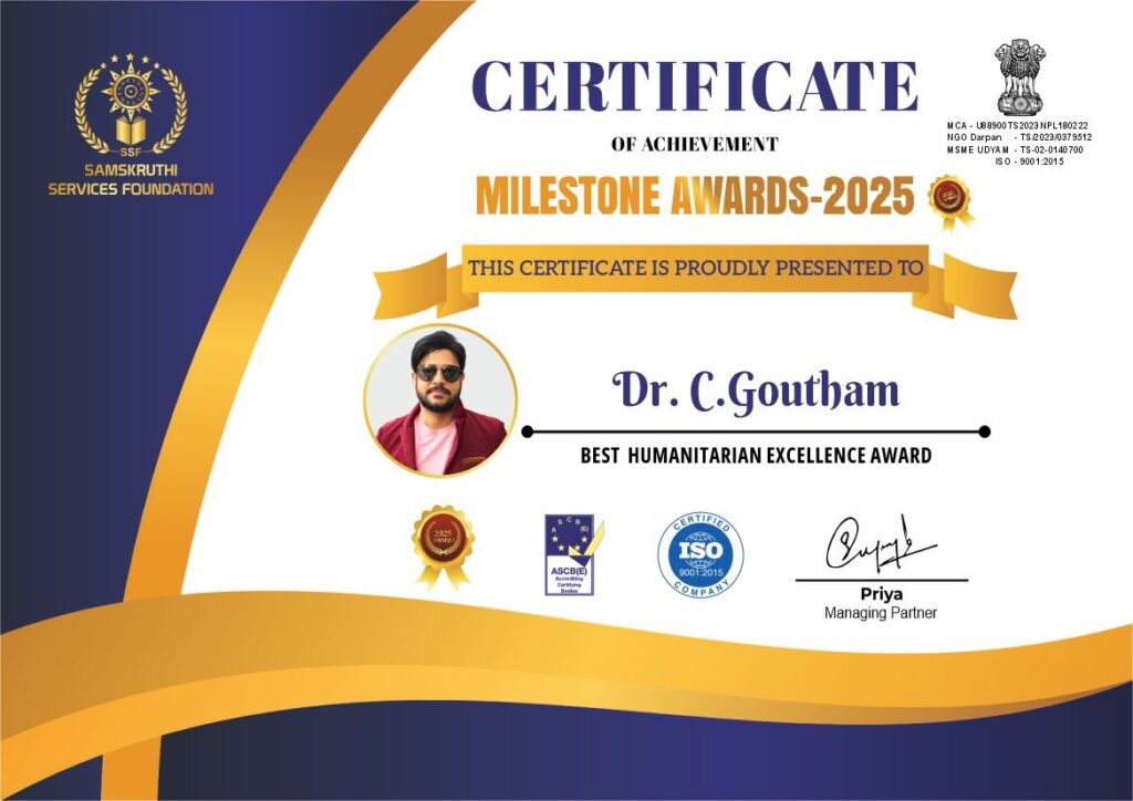 The Milestone Awards 2025, an esteemed accolade presented by the Samskruthi Services Foundation, serves as a beacon of inspiration, recognizing and celebrating the exceptional achievements of individuals, organizations, and unsung heroes who fervently contribute to the betterment of society.
